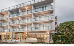 尖山湖紀念碑位在石門區石門洞,距離著名的青山瀑布約有一公里,日據時期昭和十二年(西元1937年)時,日本海軍航空隊派員前往中國作戰,行經臺灣灣石門區尖山湖上空,因天候不佳一架戰機不幸墜落,機上7名軍官全部罹難,日本當局為紀念這些戰士,特於尖山湖墜機地點,豎立紀念碑文以茲弔祭。一座十二公尺高「海軍將士戰死之地」的石碑,並建立神社紀念,周圍種有數株櫻花數,設置多座小官燈石柱。目前有規劃良好的登山步道,假日時許多民眾到此登山健行,還可觀賞石門區的外海景色。步道入口有著大石紀念碑,循著紅磚道,兩旁是茂密的山櫻林。尖山湖並非有湖,而是指低窪的谷地或盆地,經過尖山湖小坑溪谷,是「尖山湖三圳」水圳源頭,還有輸送水的水道橋,清澈小溪潺潺水聲,十分悅耳,終點為「尖山湖紀念碑」,寧靜的矗立在山間,碑前展望平台可眺望北19線的山巒、梯田風光、石門外海,享受大自然的靜謐。